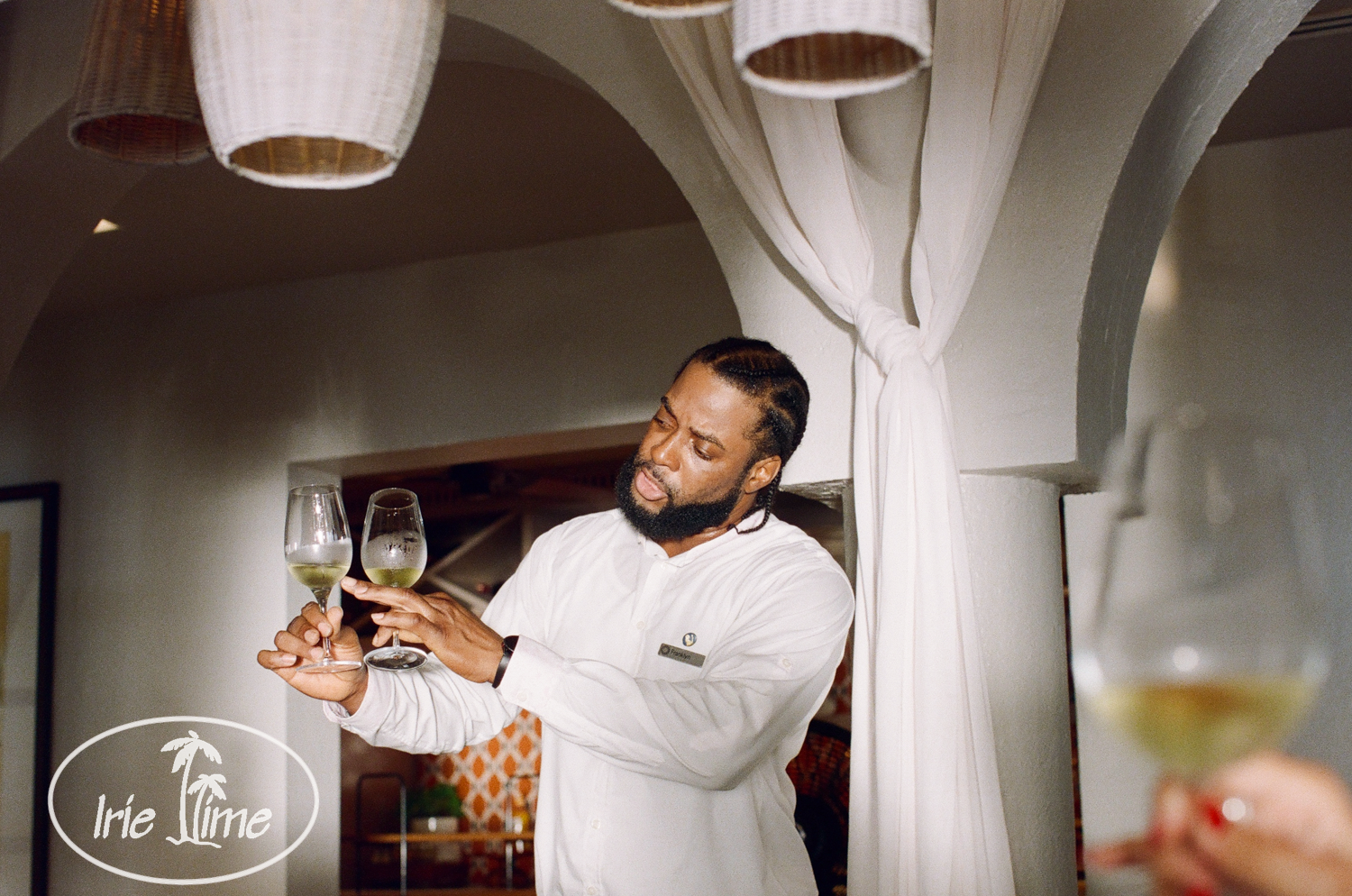 We’re on a mission to experience all the alcohol-related experiences which are complimentary at Cap Juluca, Anguilla. Our next stop: the wine tasting. We knew we wanted to do the rum tasting, so we booked that through the concierge, but while there, we decided we would try the wine tasting. While sitting on the beach, we texted our villa host, and within minutes, we received confirmation.